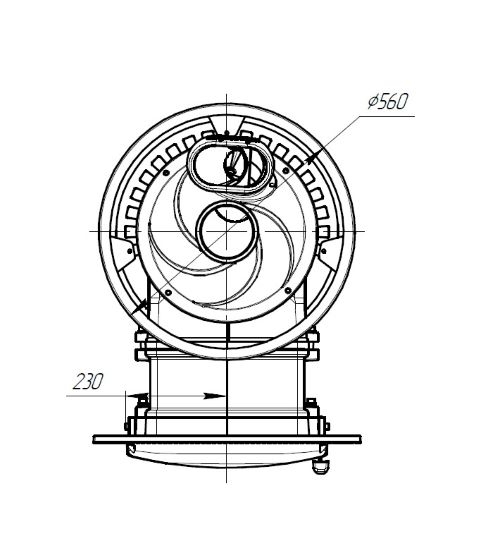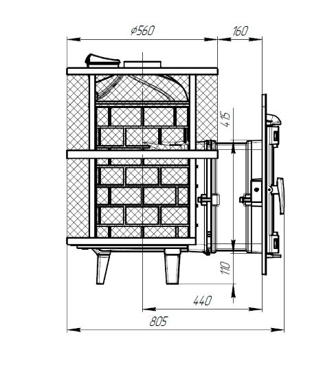 - Печь расположена на четырех высоких ножках, что способствует вентиляции печи снизу и удобству монтажа.