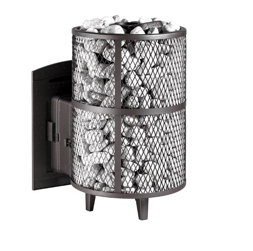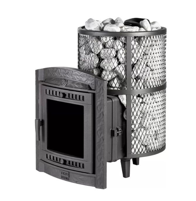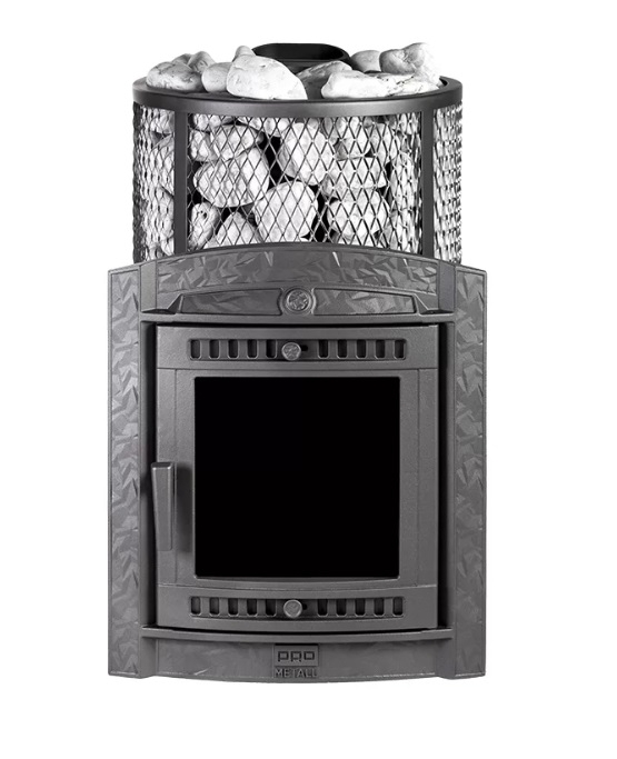 - Кожух печи представляет собой сетку, которая полностью заполняется камнями. Такая конструкция способствует более быстрому нагреву парильного помещения.