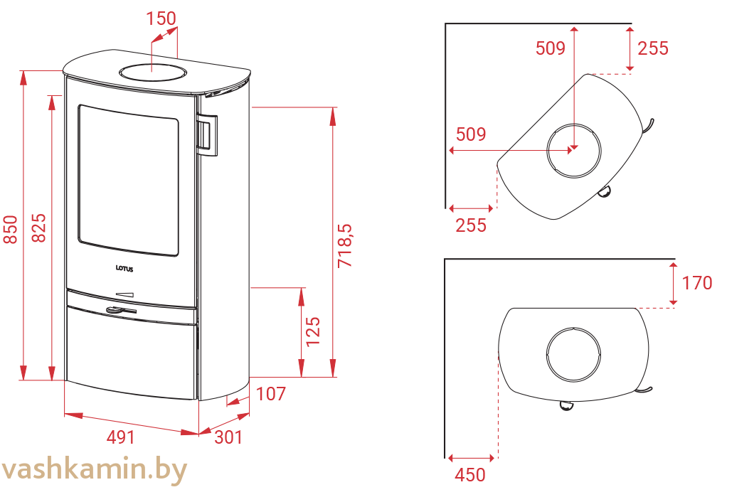 Печь-камин Lotus Jubilee 15 Steel - качественное и небольших размеров изделие для обогрева помещений. Модель из серии Jubilee отличает достойная теплоёмкость и возможность установки в любом помещении