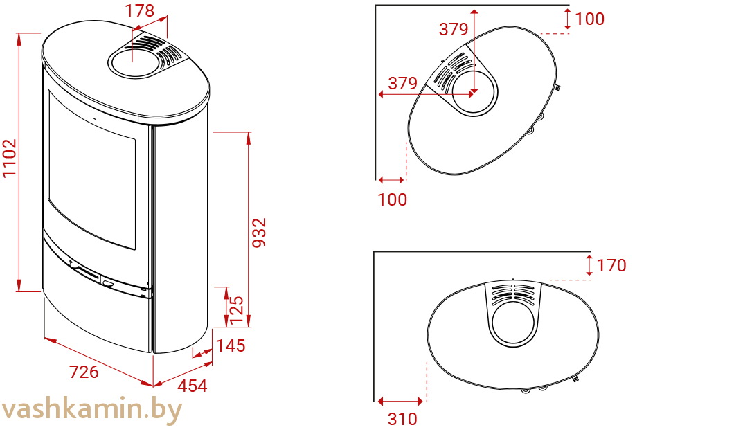 В базовой комплектации печи идут с открытым дровяником в нижней части корпуса. Эта же модель имеет дверцу, которая придает изделию более эстетичный вид.