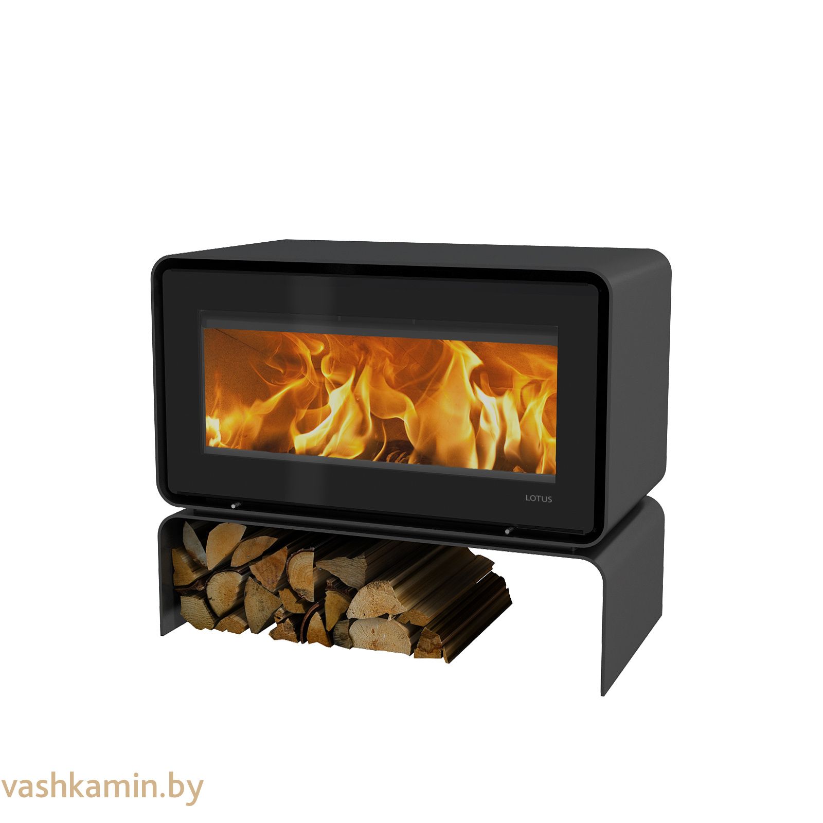 Абсолютно уникальное сочетание прямоугольных и округлых форм создает новые возможности и способ выражения для современного дизайна интерьера. Это вызывает захватывающее взаимодействие между материалами, формами и цветами. Прочная стальная основа повторяет круглую форму печи и может использоваться для хранения.