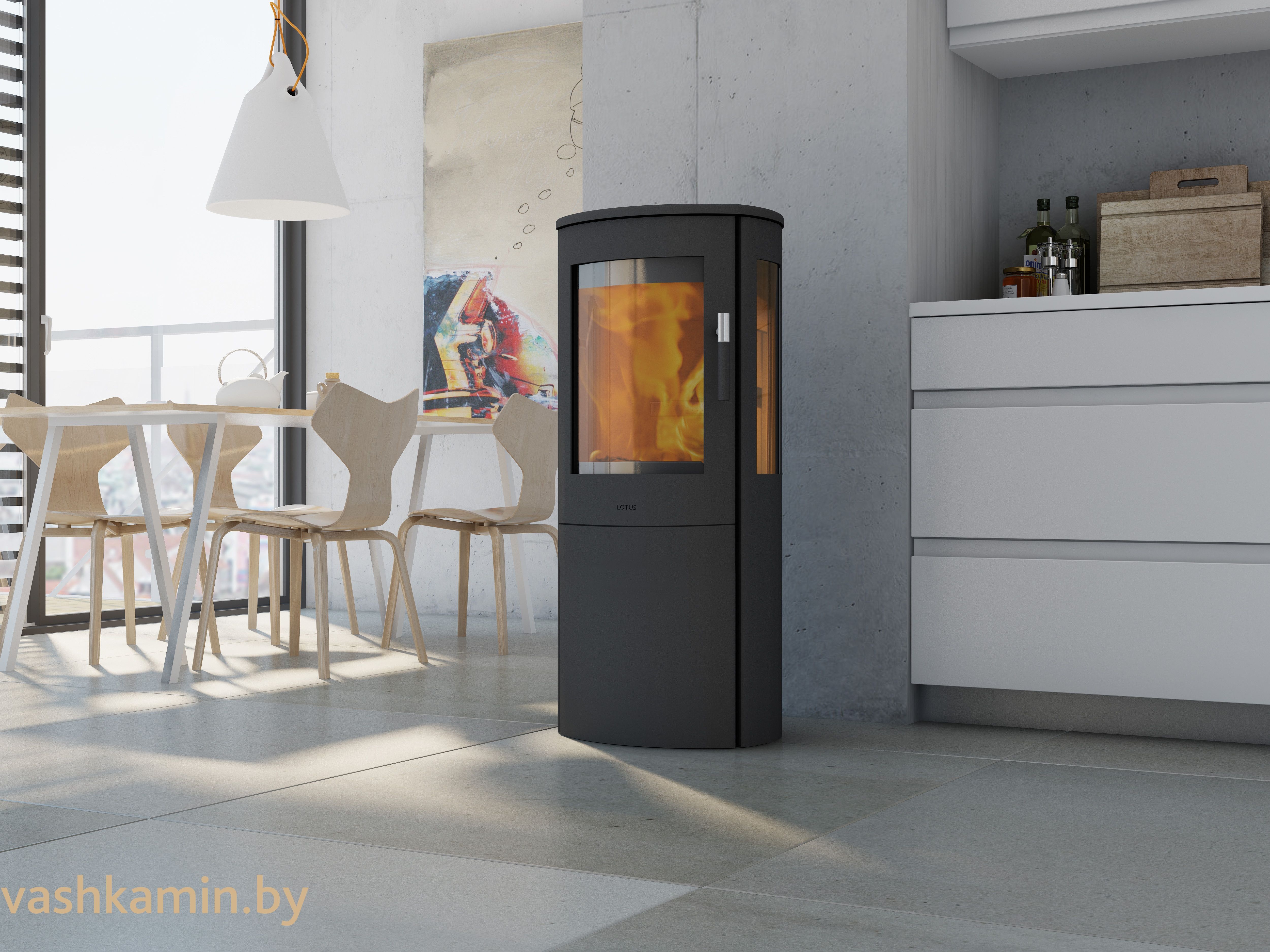 Камин представлен в строгом черном цвете. Элегантный и неподвластный времени дизайн гармонично впишется в любой интерьер. Благодаря вытянутой цилиндрической форме печь смотрится компактно даже в небольшом помещении. Гладкая матовая поверхность не нуждается в особом уходе. Корпус выполнен из холоднокатаной высококачественной стали. В качестве красителя использован термостойкий лак. Он выдерживает постоянные высокие температуры, а также линейные расширения при нагреве.