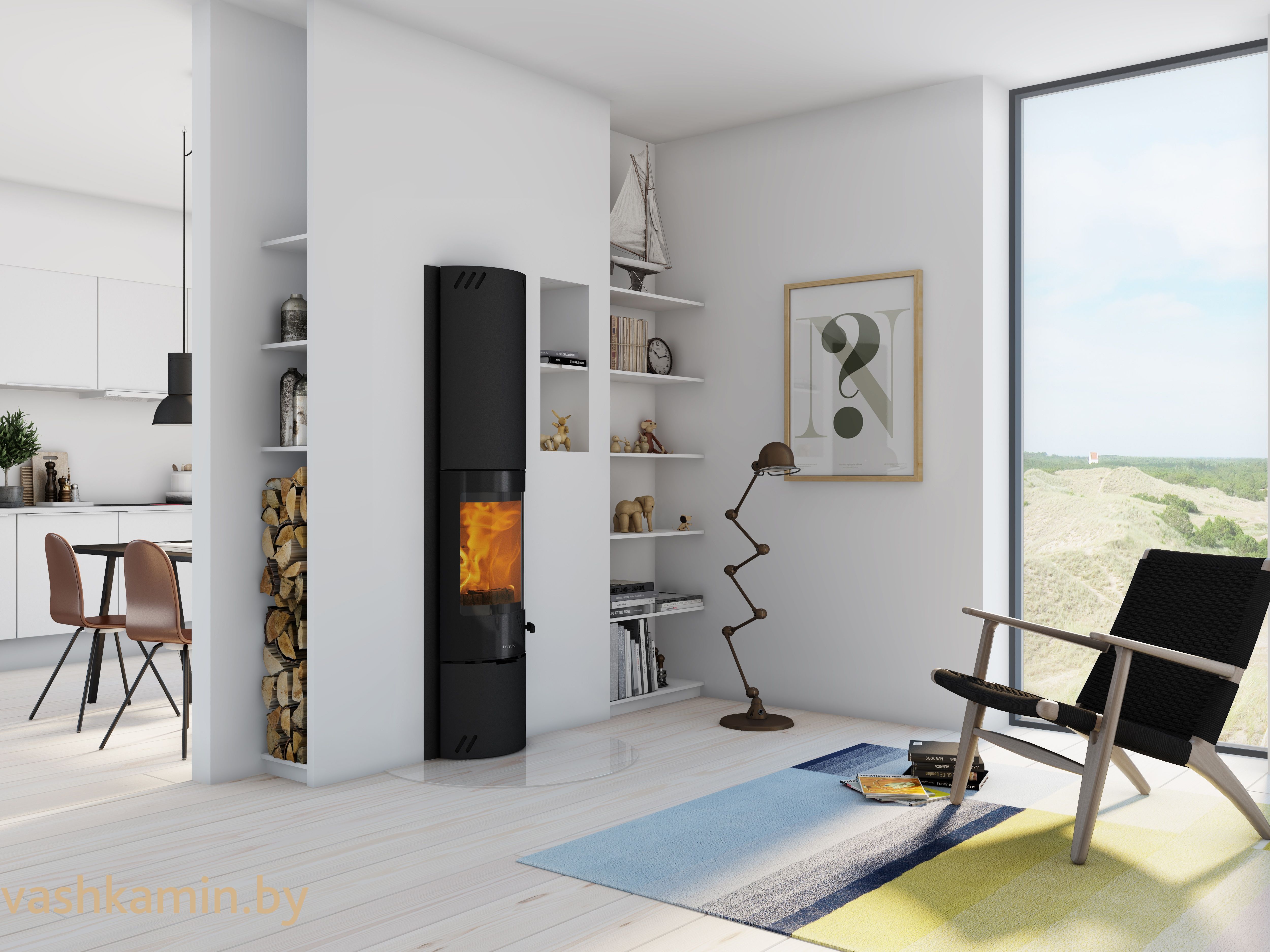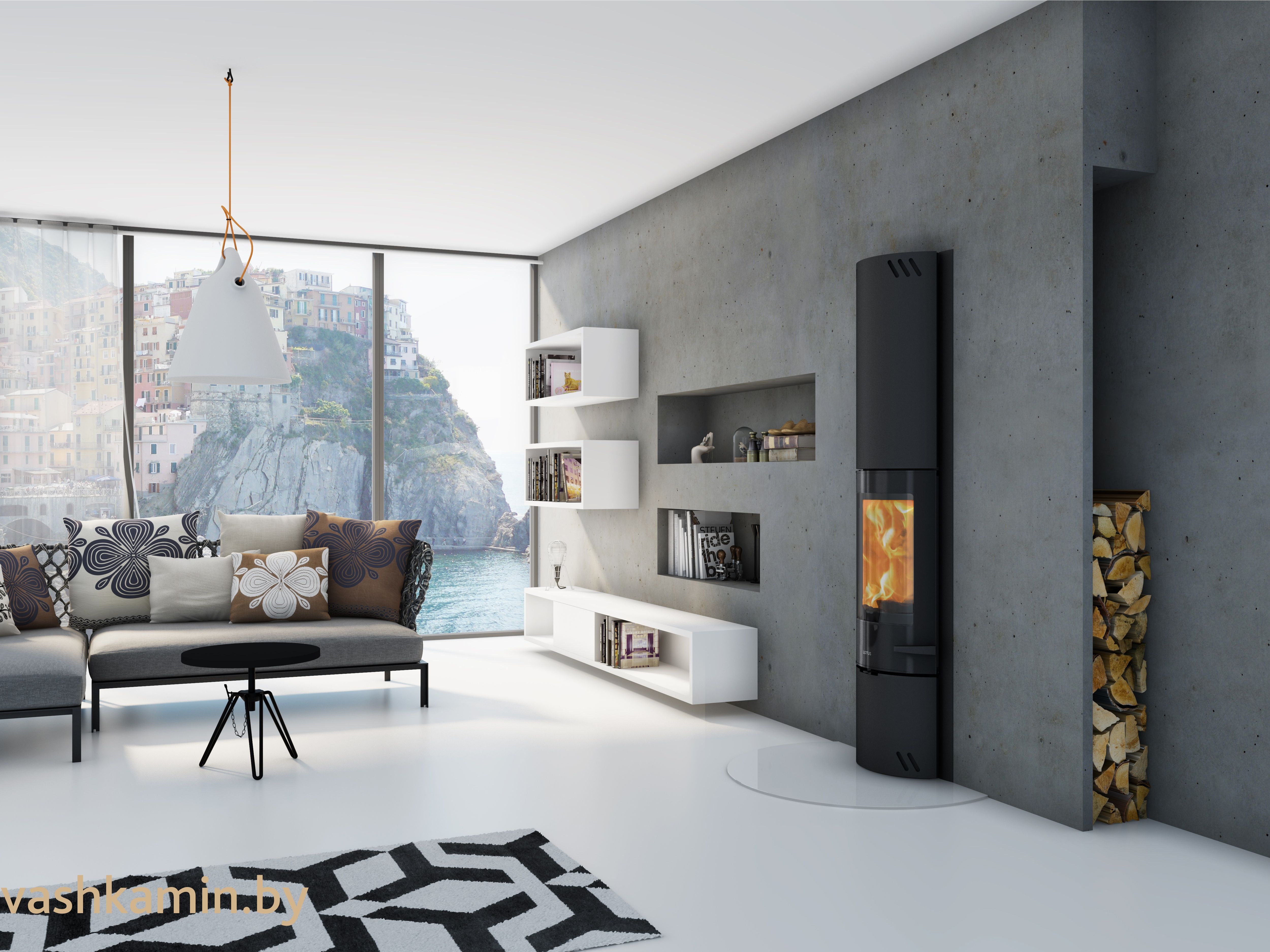 Современная дровяная печь-камин подходит для эксплуатации в жилых помещениях стандартных размеров. Вытянутая цилиндрическая форма позволяет рационально использовать пространство, и устанавливать печь практически в любом месте. Возможен монтаж нишу в качестве встроенного камина.