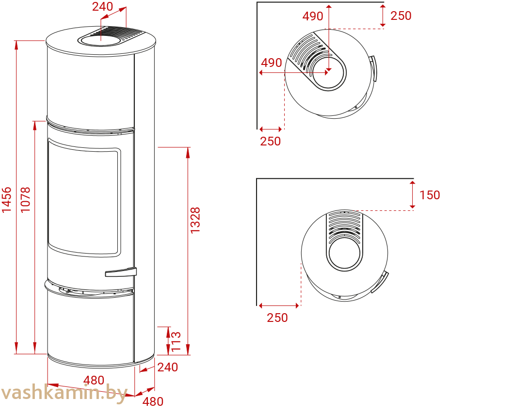 Изысканное произведение искусной работы, которое можно отделать самыми различными дополнительными принадлежностями, в том числе, встроенный, спрятанный под дверью ящик для хранения вещей, возможность обустройства в верхней части печи скрытого отсека для хранения дополнительного тепла, а также возможность вращения на 3600С. Дровяная печь, которую просто стоит испытать в работе.