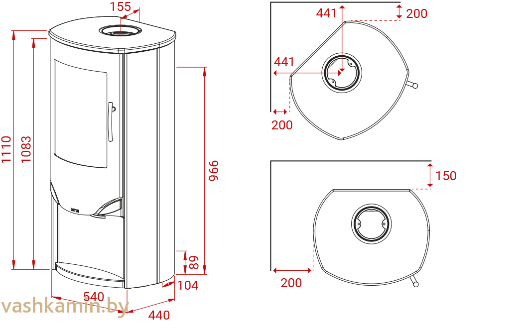 Внизу печь включает в себя большое практическое пространство для хранения дров, пожарных принадлежностей, спичек, жидкости и бумаги для розжига. Привлекательная и эргономичная ручка, которая предназначена для открывания и закрывания дверцы, не нагревается, пока вы топите печь, что позволяет дотрагиваться до нее даже без использования перчаток. Lotus Prio 6 способна на большее, чем другие модели дровяных печей. Она может нагревать помещение, поддерживать тепло на протяжении 24 часов.