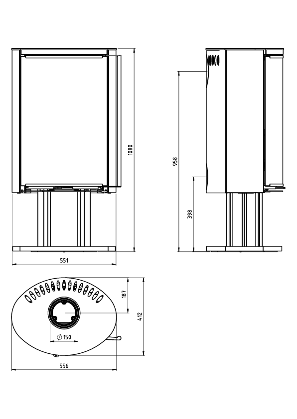 - Диаметр дымохода: 150 мм
