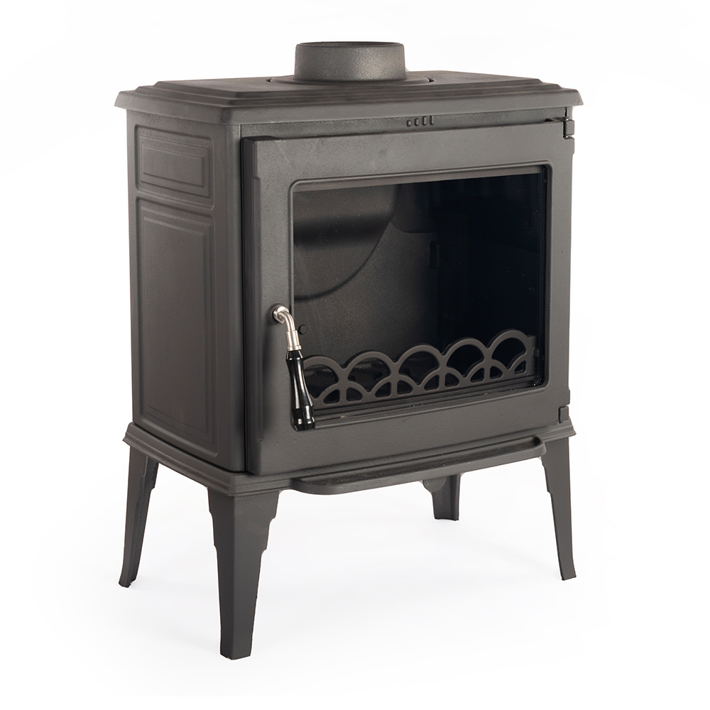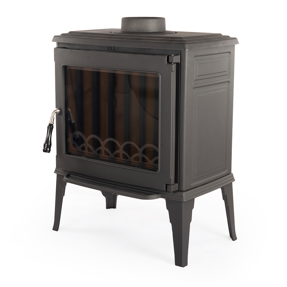 Максимальная тепловая мощность печи 10 кВт. КПД 75%. Систем длительного горения, работа в режиме тления до 8 часов. Система обдува стекла. Загрузка дров фронтальная. Диаметр дымохода 150 мм. Расположение дымохода сверху и сзади. Отделка антрацит. Размер стекла хх4 mm. Размер упаковки ДхШхВ: 550х500х800 mm. Гарантия 5 лет.