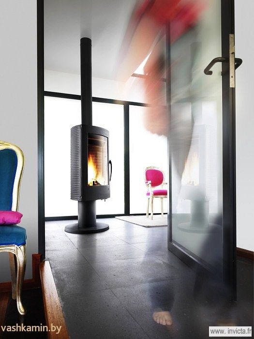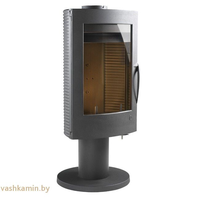 Печь-камин выполнена в темном свете, что облегчает уход за ней. Нет необходимости в ежедневном протирании от пыли и других загрязнений. Боковые части корпуса рельефные, что придает конструкции особую привлекательность. Вращается вокруг своей оси, что делает возможным установку печи в центре помещения.