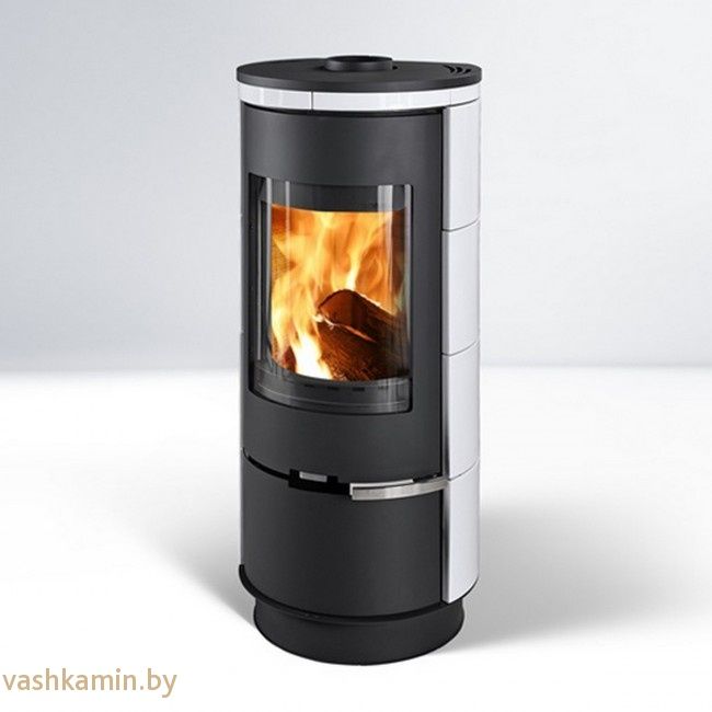 Отапливаемая дровами печь-камин «ANDORRA Ceramic» отличается вытянутой, круглой формой. Корпус облицован серым керамикой. Ее цвет прекрасно сочетается с черной дверцей и топочной камерой. Полюбоваться красивой игрой пламени можно через термостойкое стекло, установленное в дверце.