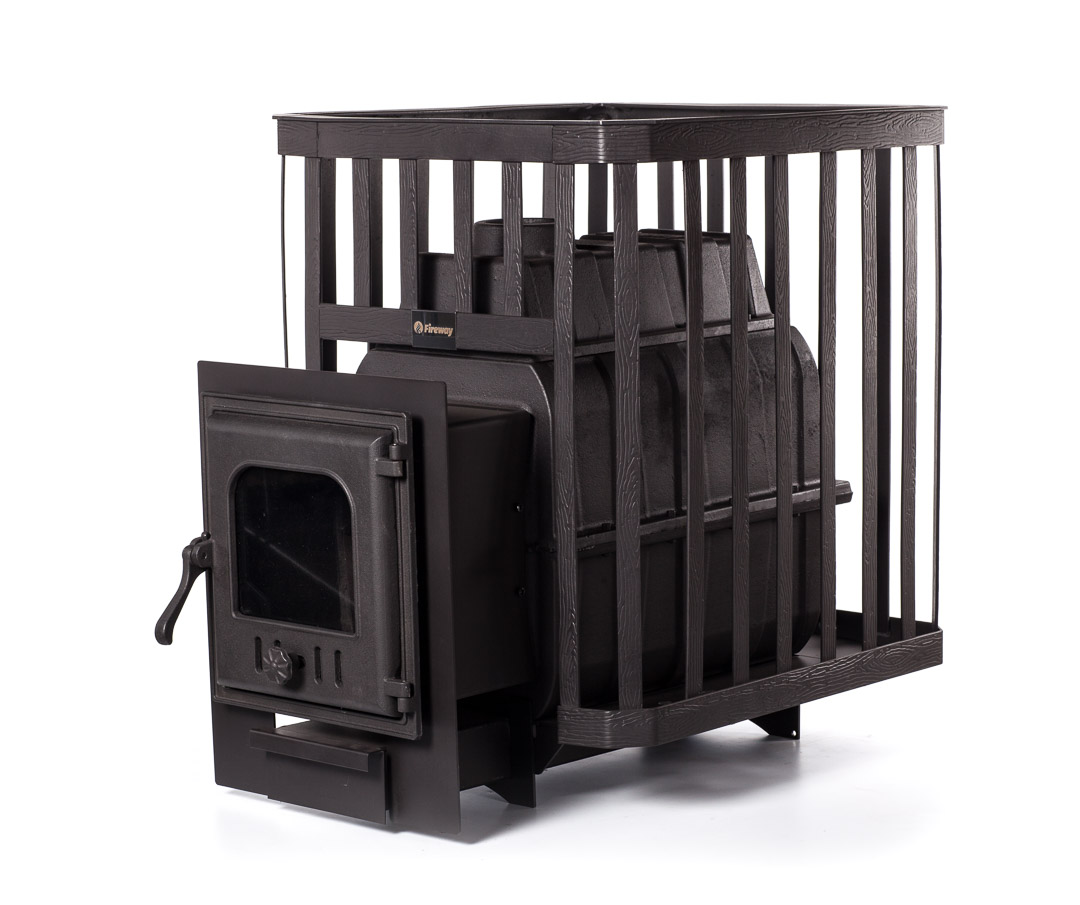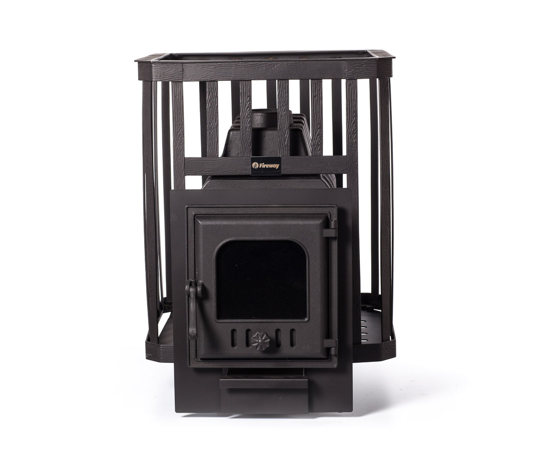 Печь предназначена для отопления парильных помещений объемом 14-24 куб. м. Топка печи чугунная. Выносной канал 20 см для топки печи из смежного помещения. Топочная дверца чугунная стандартная К402 Fireway, размер 310х340 mm. Загрузка дров фронтальная. Диаметр дымохода 115 мм. Расположение дымохода - сверху. Отделка антрацит. Размер стекла 192х210х4 mm. Гарантия 5 лет.