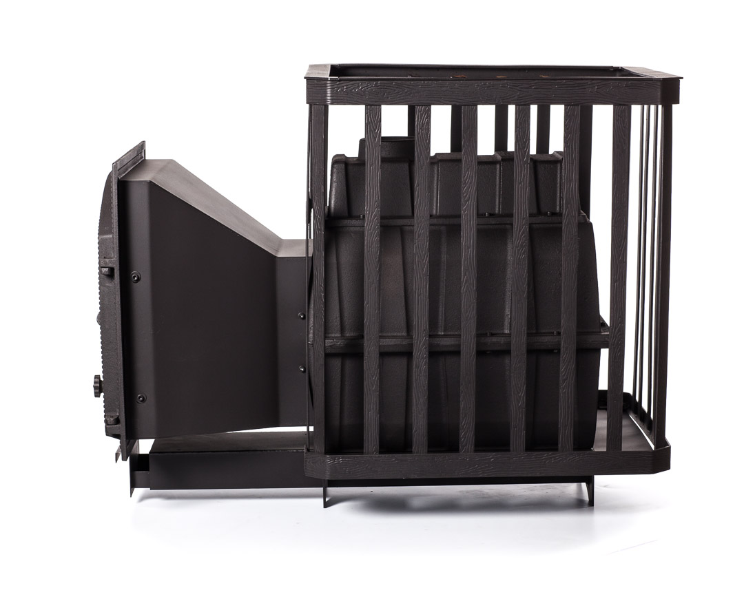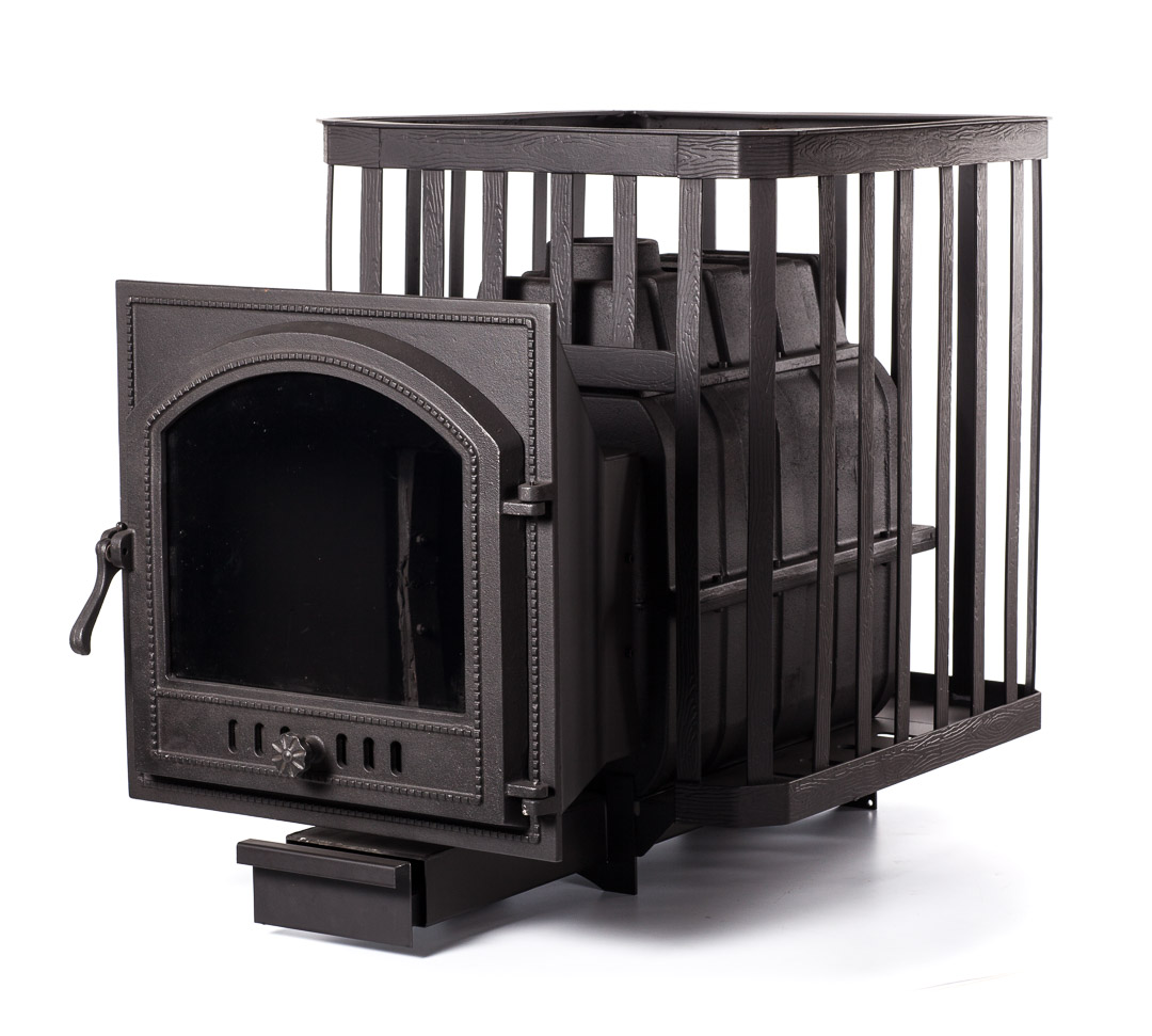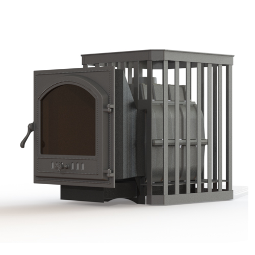 - сетка-каменка отличается высокой вместительностью (масса камней составляет 180 кг), выполнена из кованой стали и усилена ребрами жесткости, что придает конструкции необходимую прочность;
