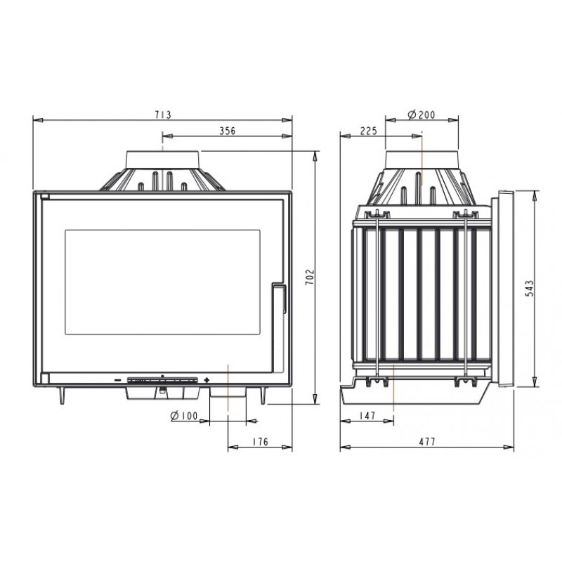 Чугуная топка Invicta 700 Air control для камина с обновленной системой закрывания, зольным ящиком.