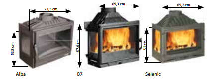Два вuдa oблицовкu Amantea применяется для дboх buдob чугунных топок с боковым окном с правой „Р“ или левой „L” стороны, размером как выше.