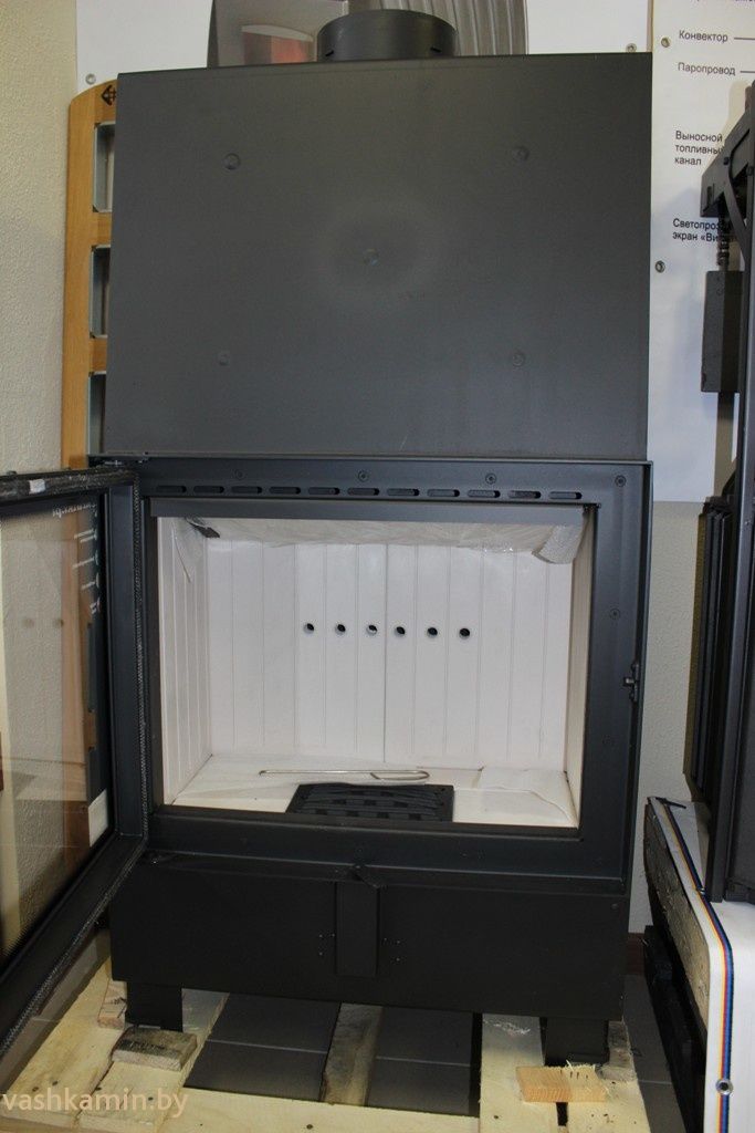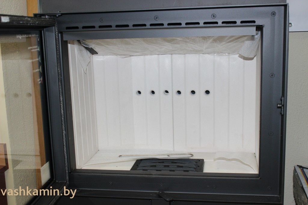 Дверь топки оборудована современной системой скользящего закрывания (как опцию можно заказать автоматическую дотяжку)..