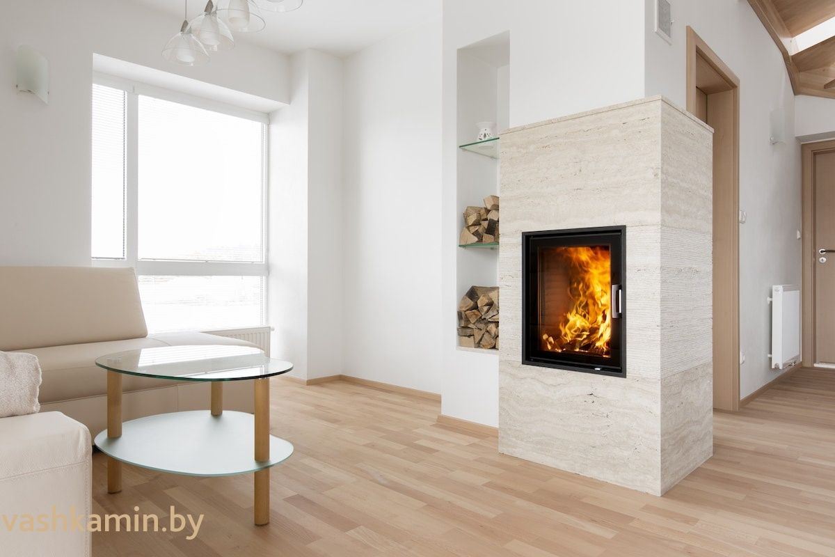Чтобы извлечь выгоду из улучшенного распределения тепла, Austroflamm предлагает различные модули аккумулирования тепла для этой каминной вставки . Все варианты изготовлены из специально разработанного и запатентованного материала Austroflamm, который быстро поглощает тепло, сохраняет его, а затем медленно и равномерно отдает. Также, если это необходимо, вы можете использовать эти топки, как эффективный прибор быстрого нагрева и отопления всего дома путем разводки в удаленные помещения нагретого воздуха нагнетаемого через заводской дистрибьютор (опция). А если вы желаете облицевать свой камин печным кафелем (изразцом) - то эти топки практически идеальны. Дело в том, что все форматы топок и конфигурация формы их корпусов, рассчитаны под стандартные градации в размерах облицовочного печного кафеля (европейские) что позволит вам избежать нежелательных подрезок при монтаже облицовок.