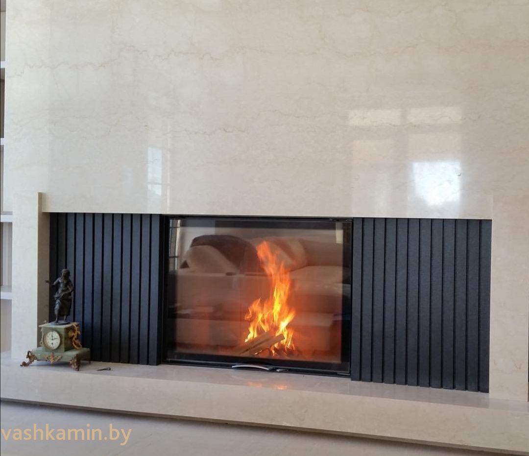 Выбирая каминную топку в этом формате обратите на это внимание. Также эта каминная вставка отличается большой глубиной, что делает ее визуально объемной и удобной в использовании.