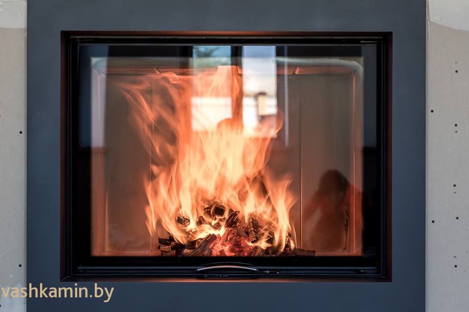 В каминных топках больших размеров серьезной проблемой является обеспечение условий для сохранения чистоты стекла и внутренней футеровки топки. Это связано с тем, что для полноты сгорания дров нужна очень высокая температура внутри топки. Достичь ее в таких размеров топок, достаточно не просто, так как большая площадь корпуса топки и стекла очень быстро отводит тепло через свои поверхности снижая тем самым температуру в топочной камере, что приводит к не полному сгоранию древесины и соответственно быстро образующемся и оседающем на боковых поверхностях внутри топки и самом стекле налете из сажи (не догоревшие частицы). Конечно, есть для решения этой проблемы различные способы у производителей. Но, сводятся они все к одному - нужно обеспечить максимально высокую температуру внутри топочной камеры для обеспечения полноты сгорания и соответственно его чистоты.