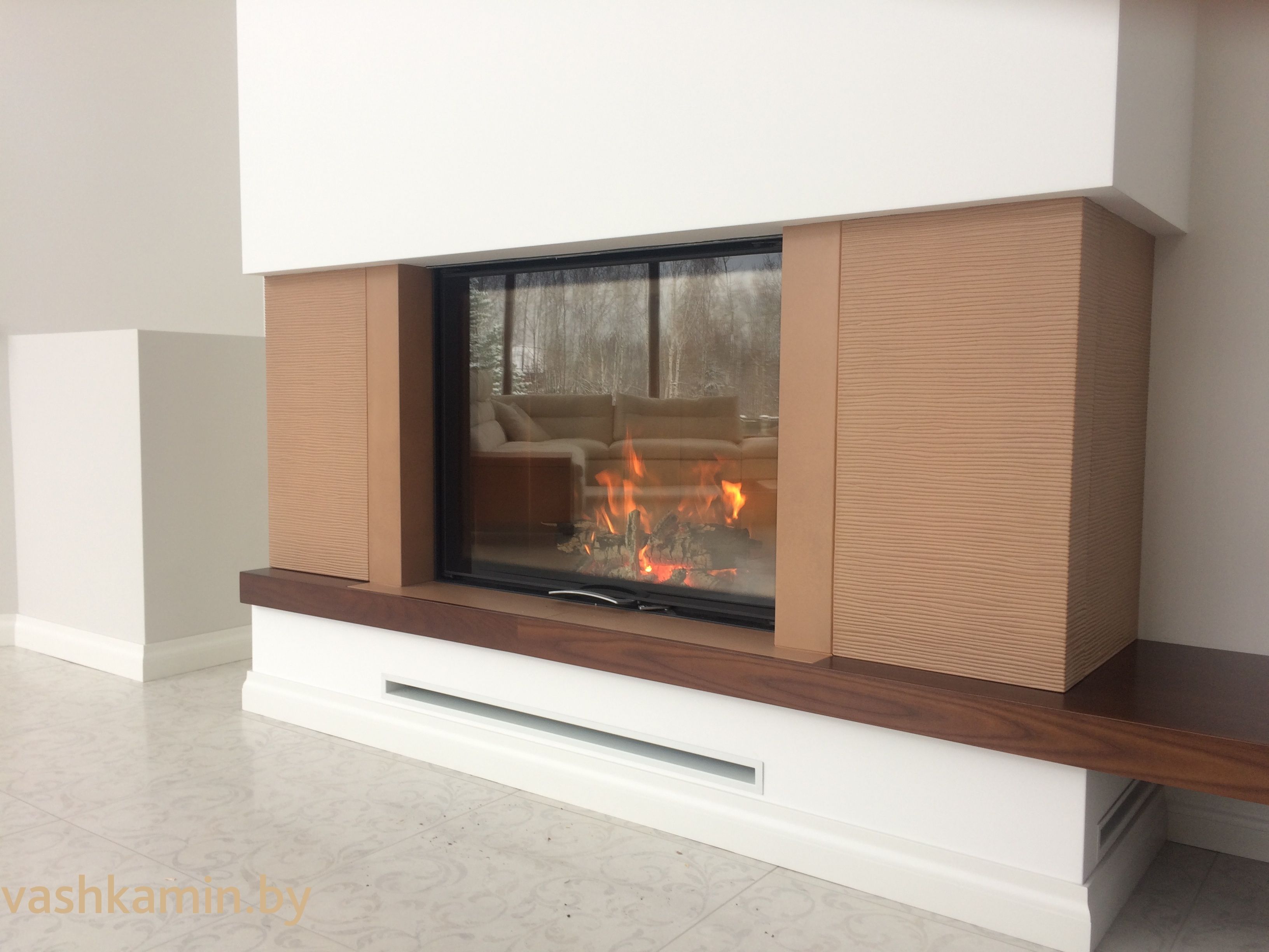 ВАЖНО!! Мало кто задумывается, что больших размеров топки - это, как правило, еще и очень мощные топки работающие на больших закладках дров... Где естественно возникают сильные тепловые потоки излучения, которые могут приводить к дискомфорту или вообще влиять на безопасность. Чем толще смотровое стекло - тем сильнее от него тепловое излучение. Установка второго стекла позволяет уменьшить это излучение в среднем на 30%. А это очень существенно может повлиять на общий комфорт от пользования камином, особенно, когда мебель располагается рядом с камином...