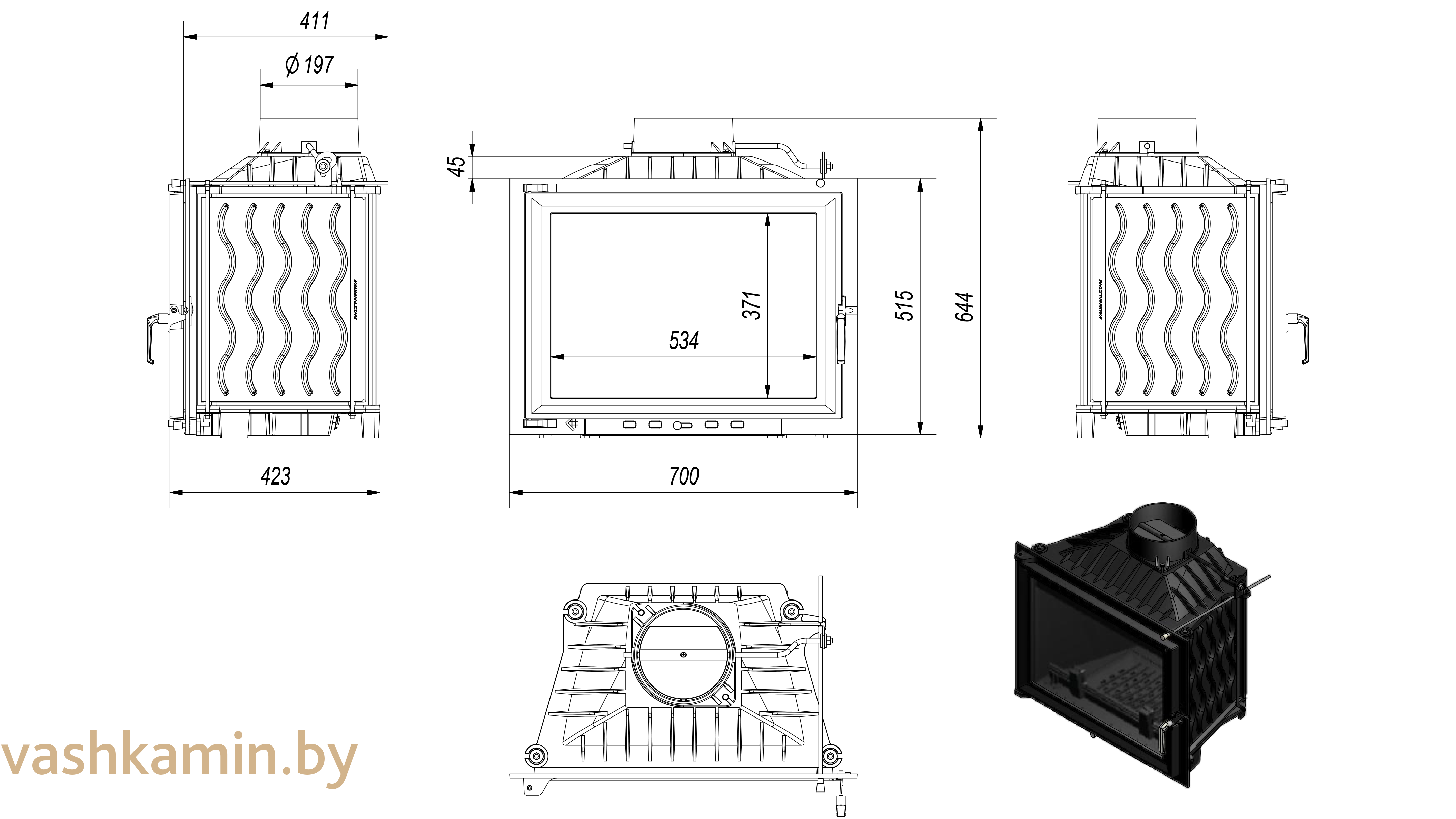 Доступны для заказа и другие модификации топки ERYK. Цену на модификации уточняйте у менеджера.