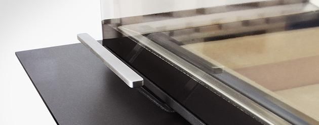 Съемная ручка Съемная ручка двери создает естественный вид на пламя. Используется на всех топках с подъемом дверцы. Размещается рядом с центром тяжести дверки, поэтому вы чувствуете комфорт при открывании двери. Дверка поднимается и опускается плавно и легко. Закройте дверь и ручку можно снять. Так она не будет мешать обзору огня.