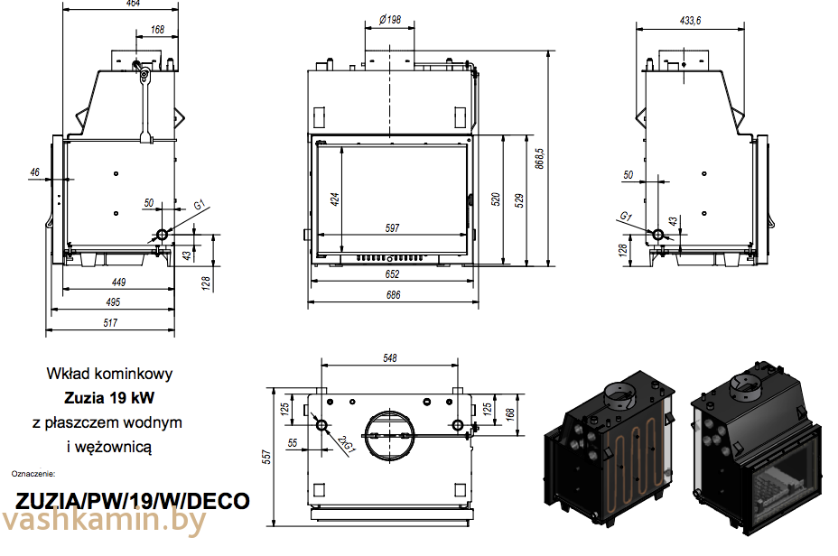 Zuzia/PW/19/W/DECO — новинка от польского производителя Kratki. Данная топка выполнена из высоколегированной стали. Основным отличием от обычной модели является рамка DECO, с ней топка смотрится более современно. Опционально топка имеет встроенный змеевик, который позволит вам произвести подключение горячей воды для собственных нужд и в случае отключения циркуляционного насоса не даст перегреться контуру. Так же стоит заметить, что вы можете включить данный камин уже существующую систему газового, либо электрического отопления, что существенно снизит ваши расходы.