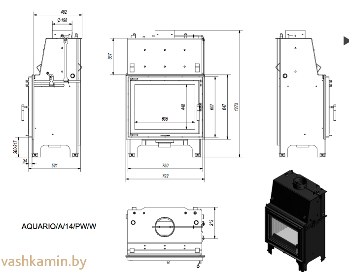 ВОДЯНАЯ КАМИННАЯ ВСТАВКА AQUARIO ДЛИТЕЛЬНОГО ГОРЕНИЯ