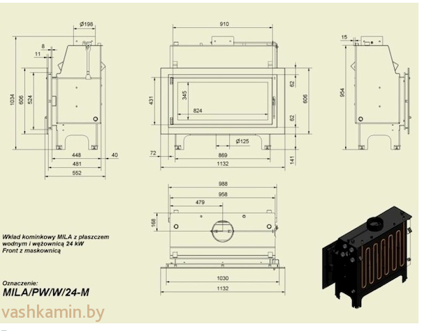 Высокопроизводительная каминная топка Kratki выполнена из прочной 4-х мм стали. Дровяная топка Mila рассчитана на обогрев дома площадью 190–240 кв.м. Благодаря широкому формату отопительной камеры, можно пользоваться длинными дровами — до 700 мм. Внутри камера обложена негорючим материалом — вермикулитом, что увеличивает срок службы камина.