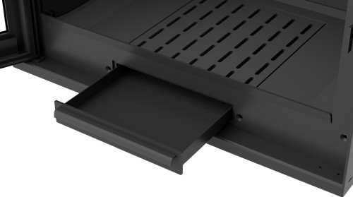 - Топка безопасна и удобна в использовании. Есть специальный съемник, который гарантирует что стекло не повредится во время сгорания сырья. Широкий пламяотбойник сохранит целостность дымохода при высокой нагрузке.