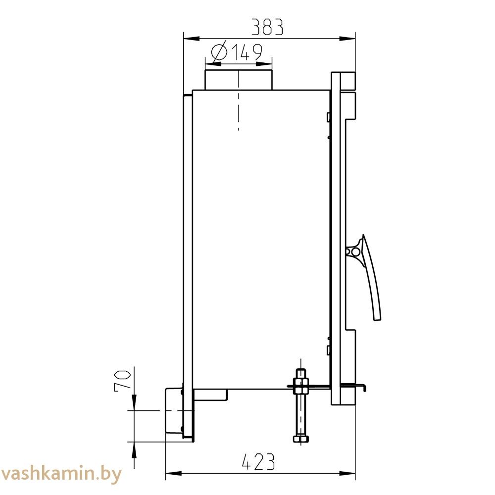 - воздух внутрь поступает из нижней части, где расположено небольшое задвигающееся отверстие. Силу горения можно отрегулировать с помощью поворотного шибера;