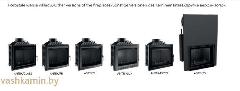 Каминная модель имеет боковое открытие и работает на сухих дровах. Antek — надежная топка, предназначенная для отопления как городской квартиры, так и загородного дома. Выбор чугуна в качестве базового материала изготовления гарантирует быстрый разогрев и медленную отдачу тепла. Доступны для заказа и другие модификации топок Antek. Цену на модификации уточняйте у менеджера.
