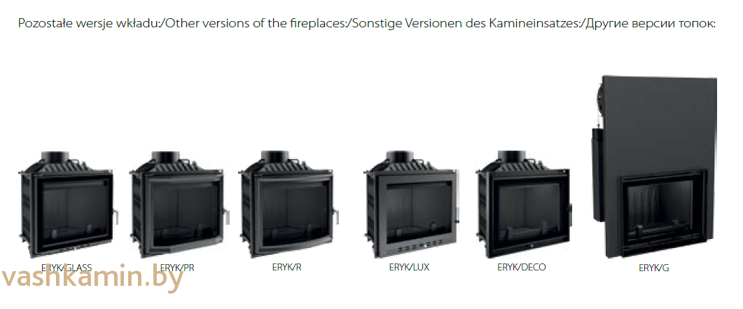 Доступны для заказа и другие модификации топки ERYK. Цену на модификации уточняйте у менеджера.