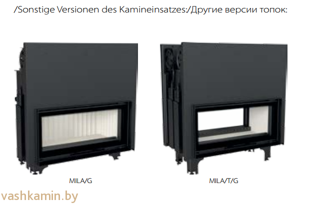 Доступны для заказа и другие модификации топки MILA. Цену на модификации уточняйте у менеджера.