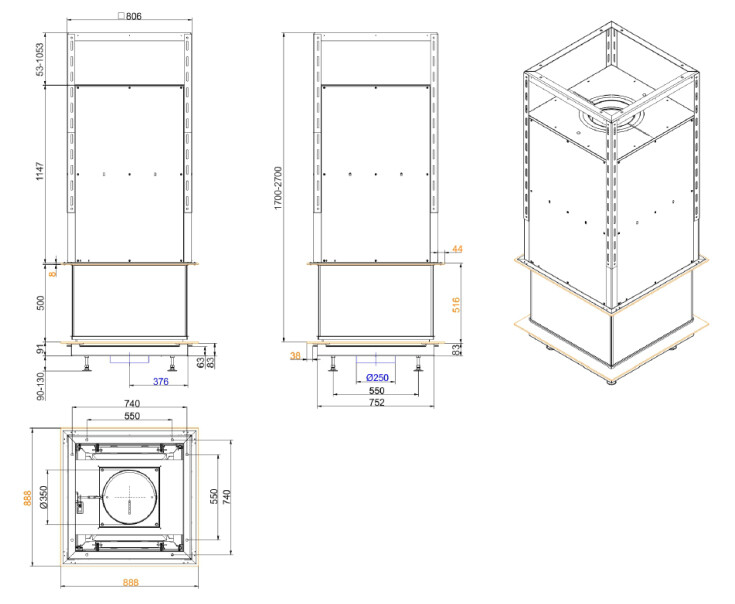 Urfeuer 4FREE70 — это не просто камин, а живая архитектурная деталь, создающая атмосферу уюта, свободы и связи с природой. Идеально подойдёт для загородных домов, каминных залов, лофтов или интерьеров с открытым пространством.